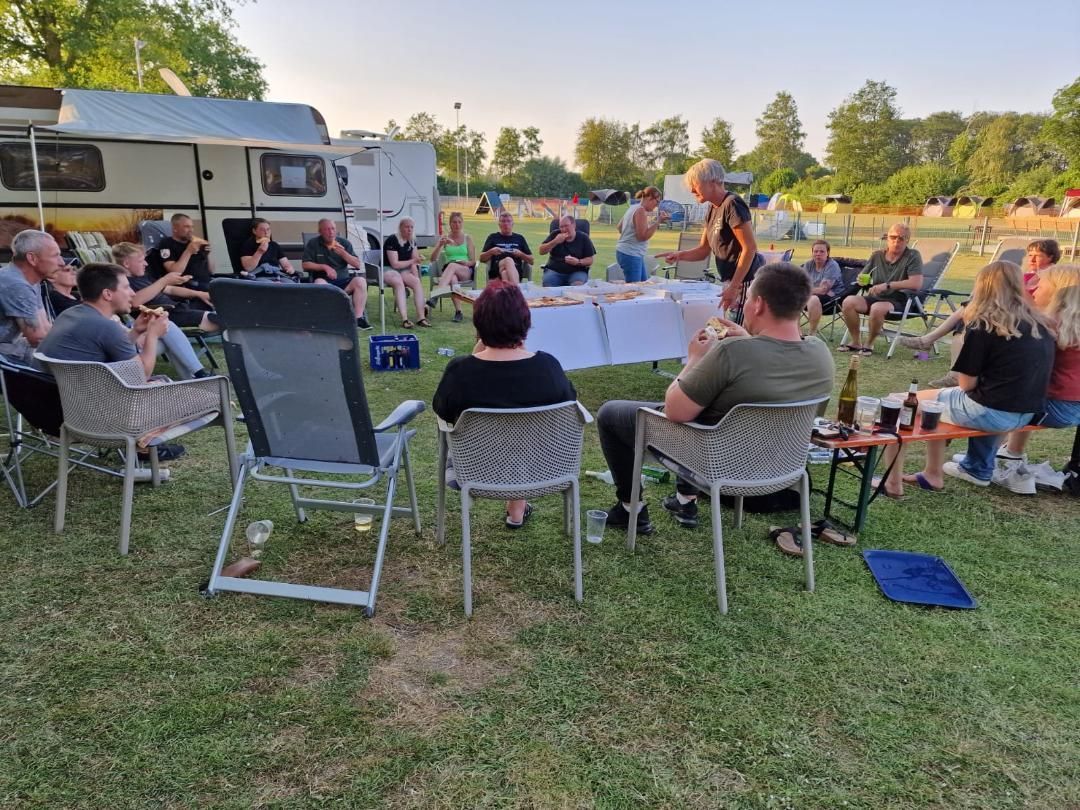 Um den Abschied gebührend zu feiern, ließen die Teilnehmer und Zuschauer den Abend in gemütlicher Atmosphäre ausklingen. Es wurden leckere Getränke serviert, köstliche Pizza genossen und ein Lagerfeuer entzündet. Die Gespräche und das Miteinander schufen eine warme und freudige Atmosphäre, in der die Verbundenheit und der Zusammenhalt der Hundesportgemeinschaft spürbar waren.